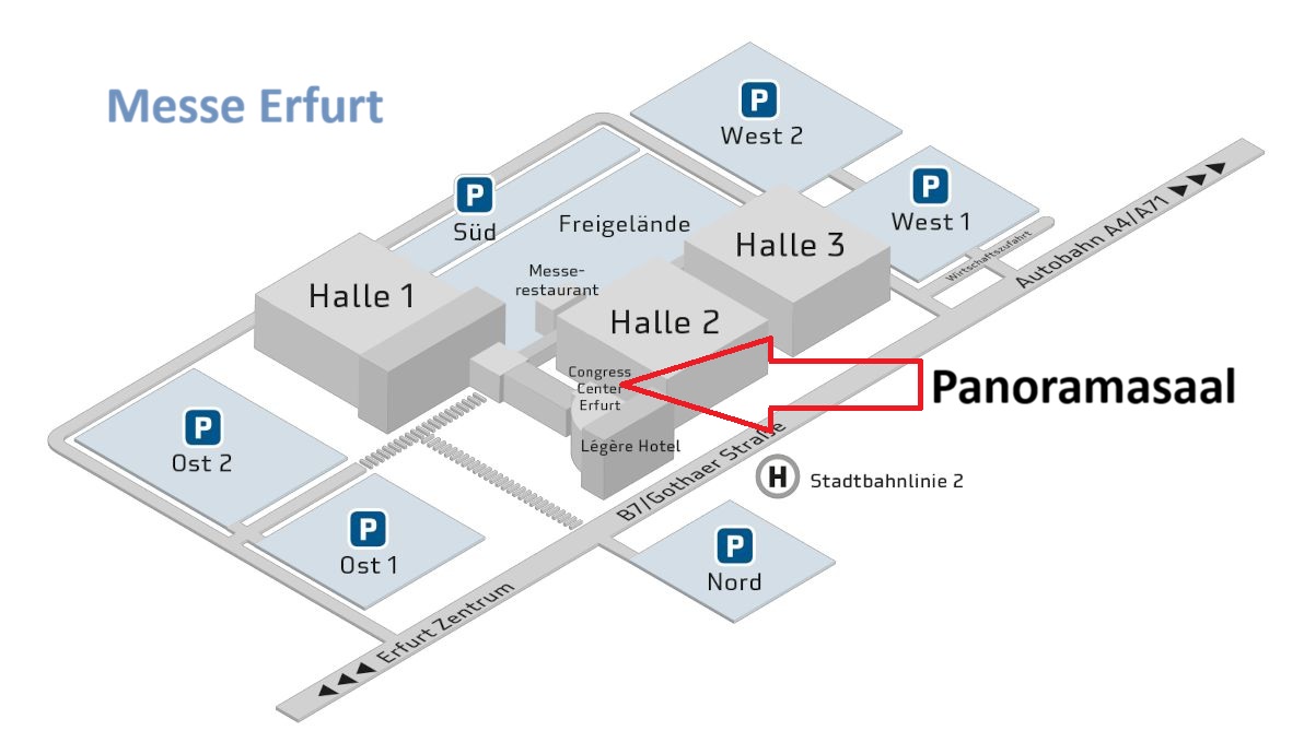 Wir treffen uns im Panoramasaal. Dieser befindet sich im 3. OG des CongressCenter Erfurt.