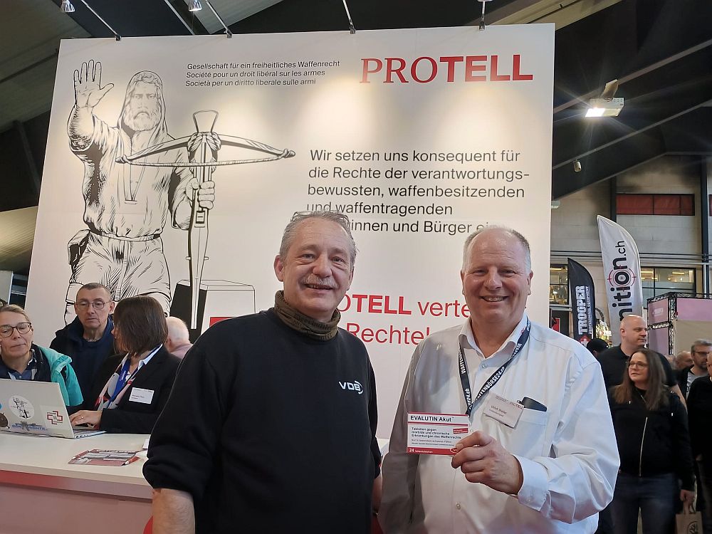 Ulrich Stoller vom PROTELL-Vorstand freute sich über eine Packung EVALUTIN akut – erhältlich in unserem VDB-Merchandise-Shop.