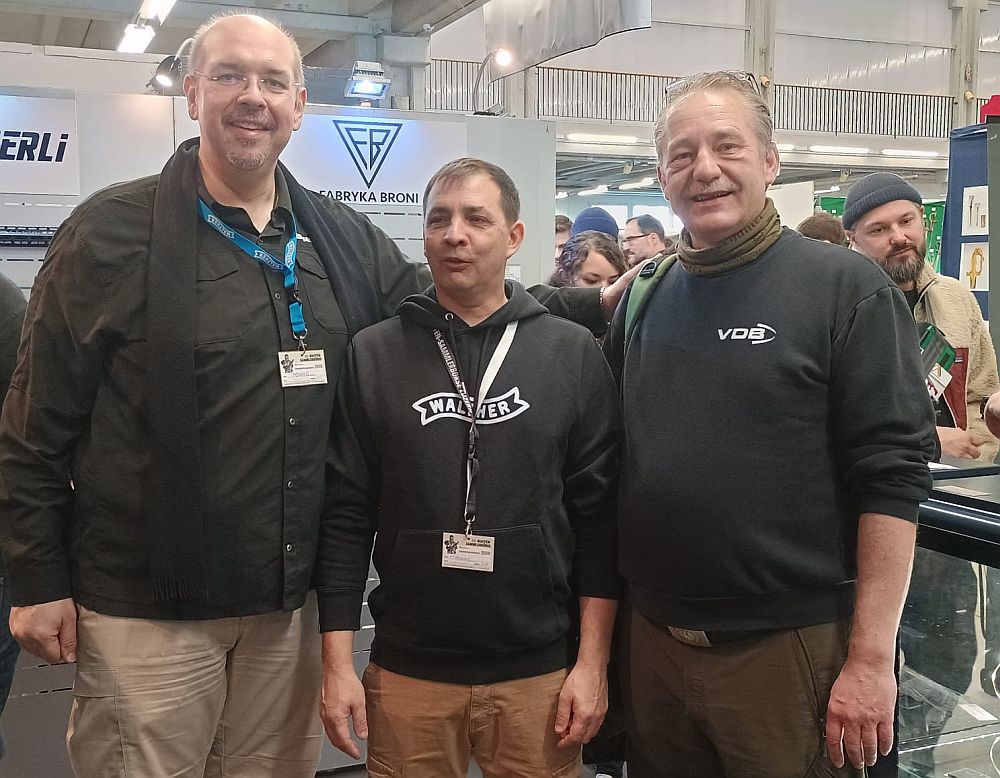 Hendrik Giessler (Foto, von links) von unserem Mitgliedsunternehmen German Sport Guns GmbH und Raphael Brunner, Geschäftsführer der Spowag GmbH (die Vertriebsgesellschaft der German Sport Guns in der Schweiz), freuten sich, Frank H. Neis in Luzern zu treffen.